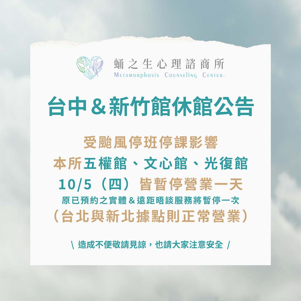 10/5(四)台中與新竹地區宣布停班停課一天🌀