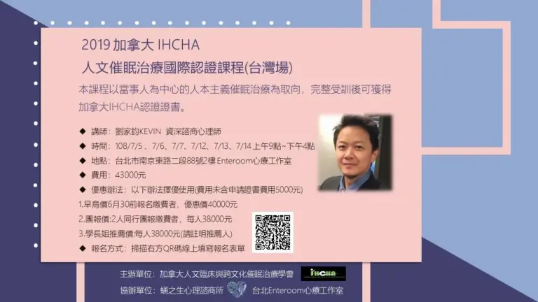 📣📣📣2019年加拿大IHCHA人文催眠治療國際認證課程