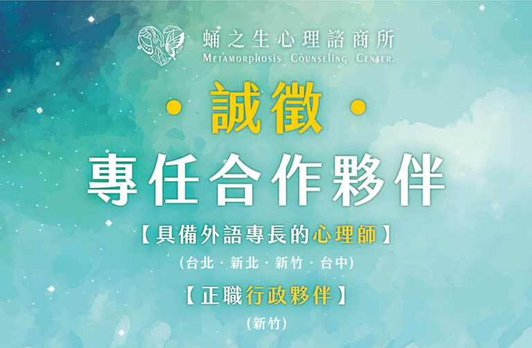• 專長議題:關係議題、伴侶諮商、家族諮商,必須具備外語諮商能力(英文)