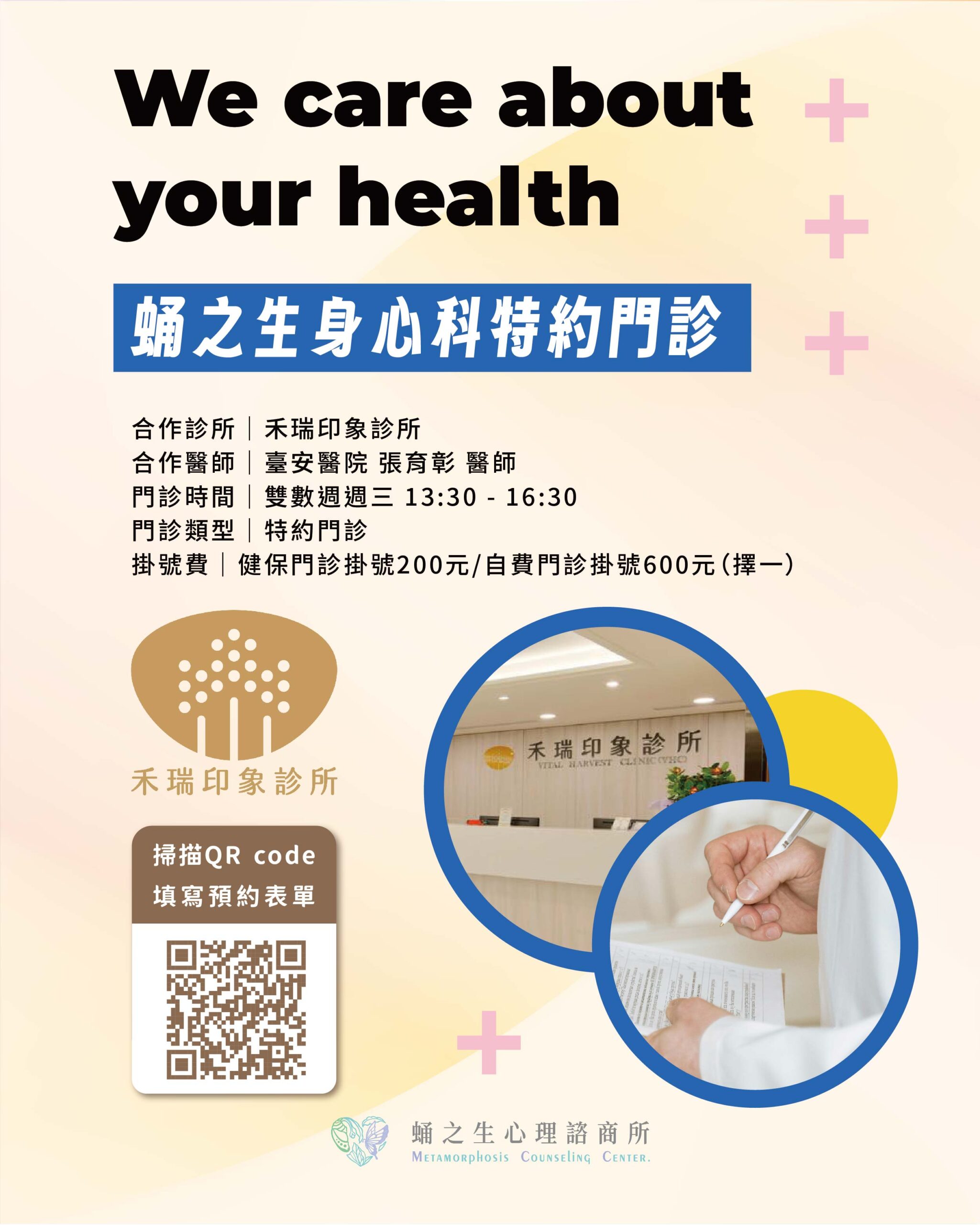 本所提供特約身心科門診服務,由專業身心科醫師為您量身評估,協助了解情緒困擾、睡眠問題、壓力適應等心理議題,並可視需求安排藥物治療與心理支持。