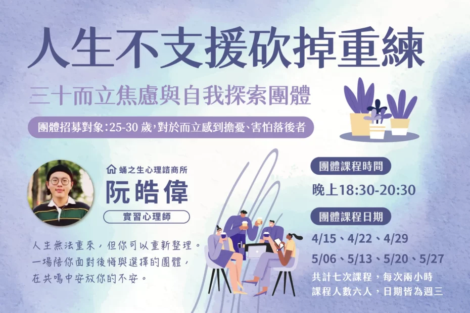 人生不支援砍掉重練:三十歲年齡焦慮與自我探索團體 開放報名