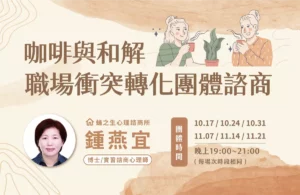 在職場上和同事互動到與主管溝通,從情緒壓力到人際關係的卡住時刻,你是否也曾有這些聲音?「明明只是想表達想法,卻常被誤解」「和同事關係僵住了,好想轉圜,卻不知怎麼開口」「衝突一再重演,我只能選擇沉默」別擔心,我們一起找到辦法。